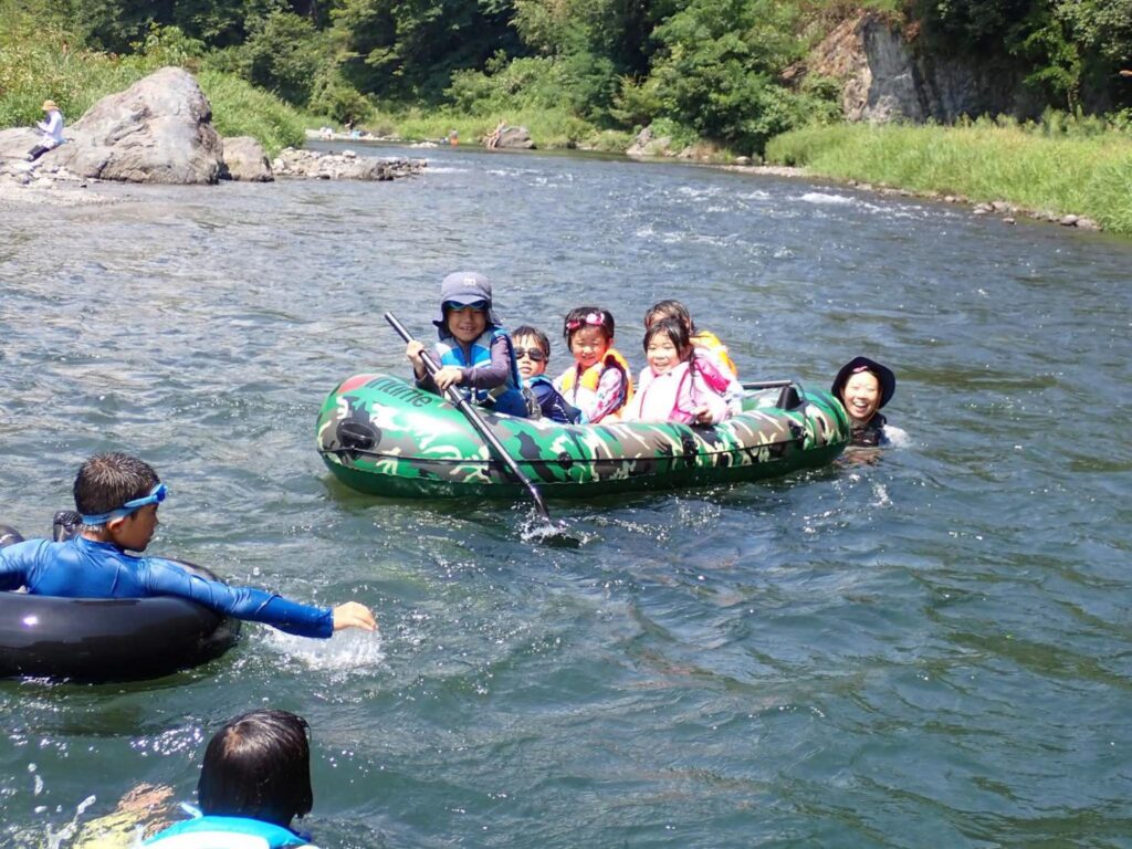 このインタビューを行ったのは夏。NPOの事業の一つである野外保育を卒園した1〜6年生の小学生たちが、毎日学童のように集まって川あそびをする時期だ。どれだけ潜れるか、どれだけ仰向けになれるか、どんなふうに息を吐けるか、何回水中で回転できるか……。朝から夕方まで川であそんで日焼けで鼻の皮がむけ、最後に出てくる言葉は「今日もやり切った」「もう寝たい」「さいっこー」