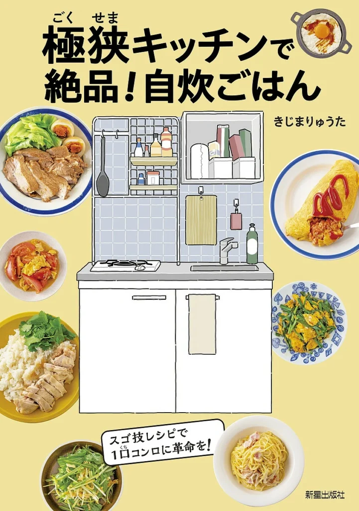 聞くところによると「ひとり暮らし」は台所が狭いらしい。で、コンロは我が家のように3口なんて無い上に、まな板を置くスペースがあるかどうかもあやしい。シンクも狭くて、洗い物もままならない。そんな極狭キッチン、とっても料理がしにくそうだ。そんな時は、この本の出番。きじまりゅうたさんの『極狭キッチンで絶品! 自炊ごはん』。